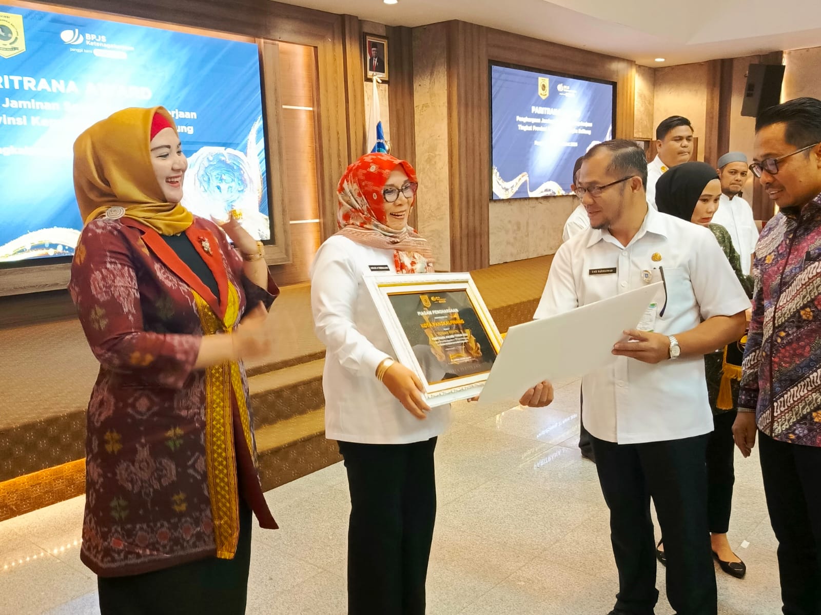 SEKILAS INDONESIA, PANGKALPINANG – Pejabat (Pj) Wali Kota Pangkalpinang, Lusje Anneke Tabalujan beserta jajarannya menghadiri acara penyerahan piagam Paritrana Award Penghargaan Jaminan Sosial Ketenagakerjaan Tingkat Provinsi Kepulauan Bangka Belitung di Ruang Pasir Padi Kantor Gubernur Kepulauan Bangka Belitung, Rabu (27/03/24).
