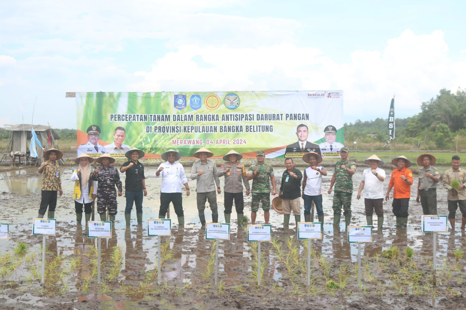 Sekilas Indonesia, Merawang – Danrem 045/Gaya Brigjen TNI A.Dedy Prasetyo,S.I.P. bersama Forkopimda Bangka Belitung Tanam Bersama Gerakan Percepatan Program Optimalisasi Lahan dan Pompanisasi tempat di Sawah Desa Kimak Kabupaten Bangka, Kamis (04/04/2024)