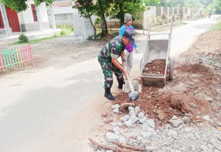 “Adapun Danramil 2304/Anyer memberi tugas pada anggotanya Babinsa Desa Grogol dan Babinsa Desa Tambang Ayam giat Karbak pembuatan rumah warga dan pembersihan tanah tepi jalan di masing-masing wilayah Desa,” urai Kapten Inf Khoerudin