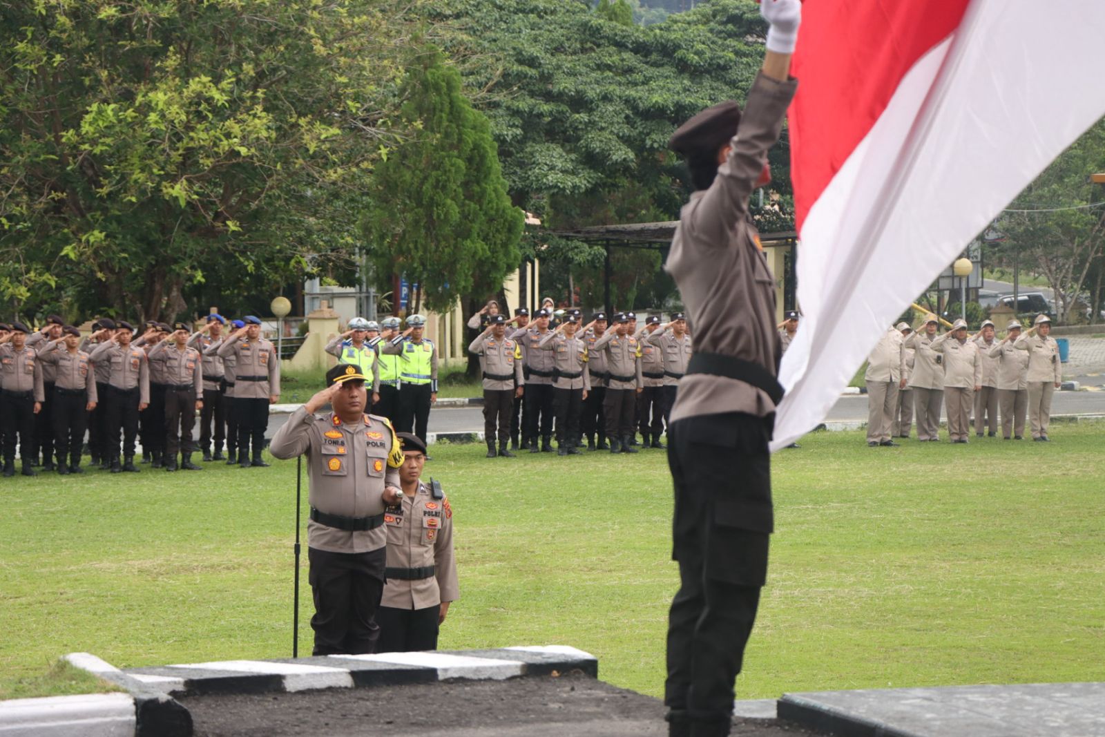 Dalam pelaksanaan Upacara tersebut dipimpin langsung oleh Kapolres Bangka AKBP Toni Sarjaka, S.H., S.I.K., M.I.K., dan di ikuti Waka Polres Bangka Kompol Ayu Kusuma Ningrum, S.I.K., Pju Polres Bangka, Kapolsek Jajaran, Perwira, Bintara dan Asn Polres Bangka.
