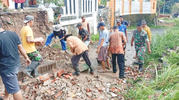 “Begitu juga dengan Babinsa Kelurahan Taman Baru juga sama mendapatkan tugas Danramil Ciwandan melaksanakan giat Karbak Bersama masyarakat dalam rangka gotong royong pembersihan puing-puing tembok yang roboh di wilayah Kelurahan Taman Baru,” ucap Babinsa Serda Sariadi.