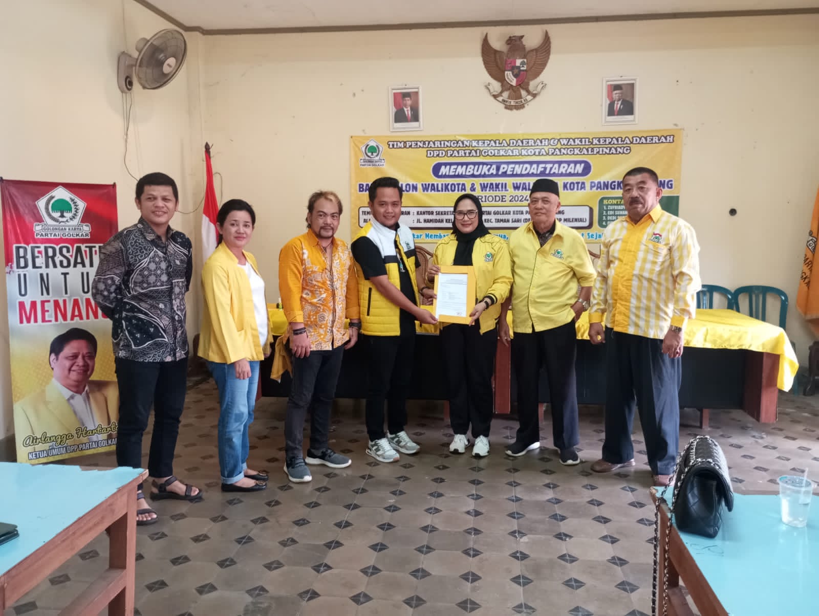 Sekilas Indonesia, Pangkalpinang – Hilda Agustina yang biasanya di sapa Titin, Dengan didampingi Rina Tarol dan para pendukungnya, dengan Bismillah dan niat yang tulus memantapkan diri untuk untuk mendaftarkan diri menjadi Bakal Calon Wakil Walikota Pangkalpinang dalam Pemilihan Kepala Daerah (Pilkada) Kota Pangkalpinang periode 2024-2029 di Sekretariat DPD Golkar, jum’at (26/4/2024) pada pukul 09.00 WIB.