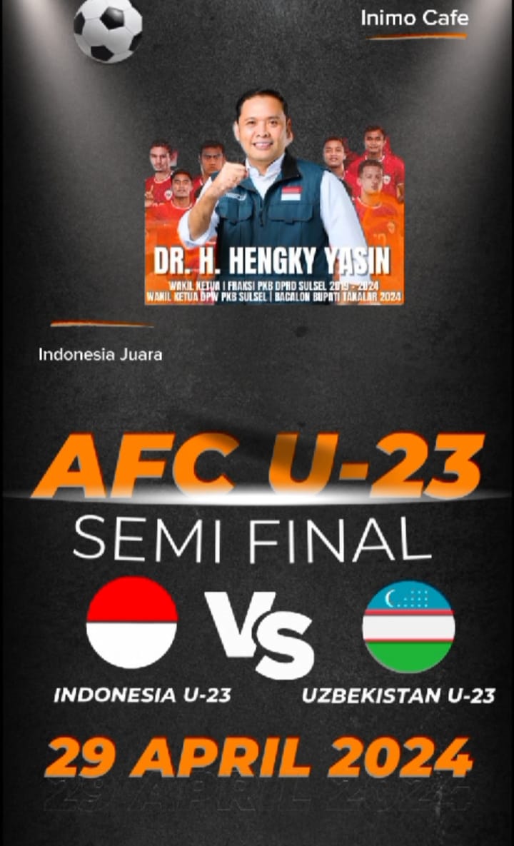 Semoga malam ini Dewi Fortuna masih ada di pihak kita, Garuda muda dan bisa melaju ke partai Final piala Asia U.23 dan dengan rasa semangat, kebersamaan para warga Takalar untuk tetap memberikan doa,support, dukungan karna Alhamdullilah ini sebuah sejarah baru karna bisa tampil untuk pertama kalinya di pentas Olimpiade yang akan digelar di Paris 2024,”nantinya ujarnya.