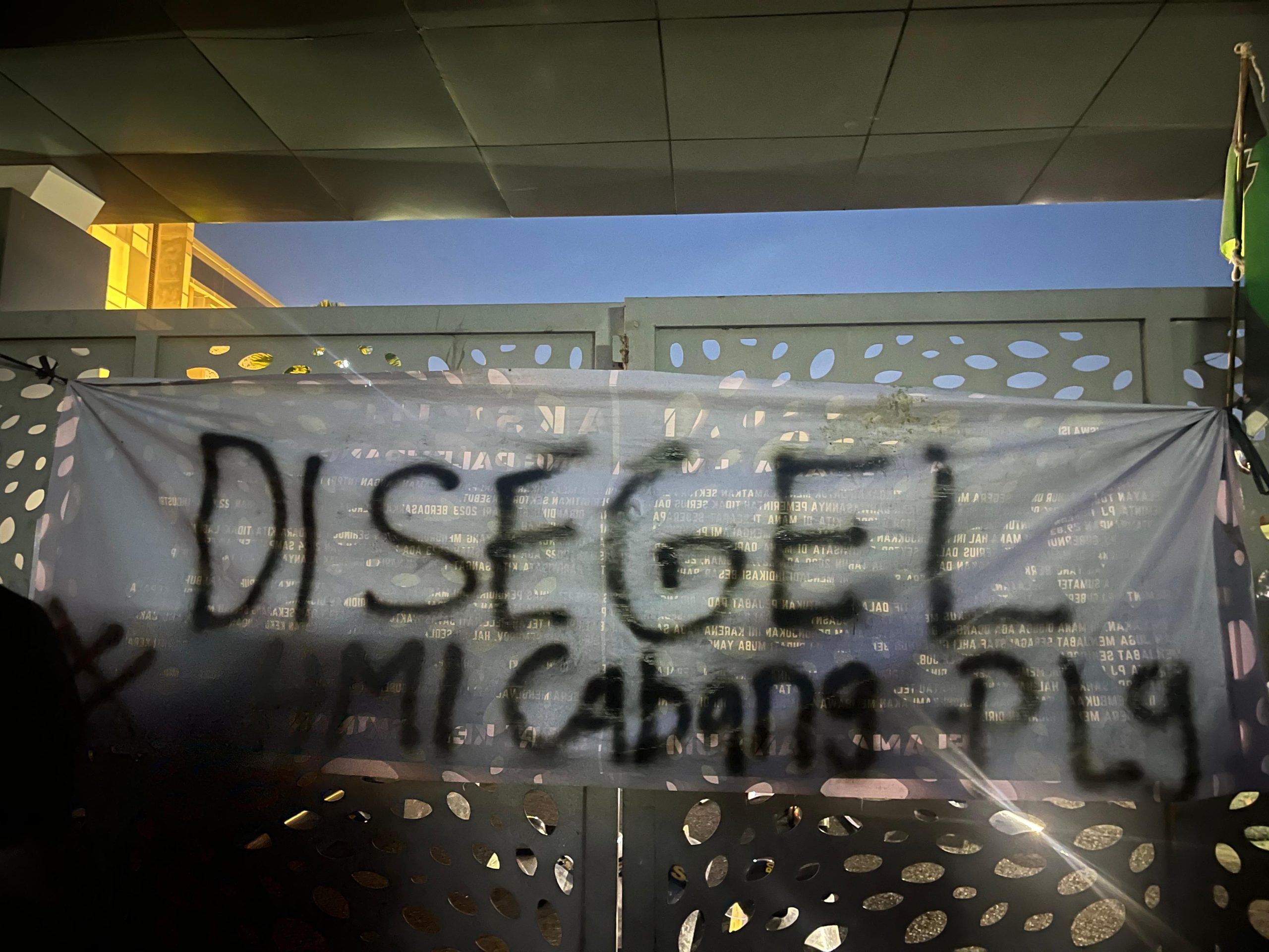 Dalam aksi tersebut, terlihat para mahasiswa membawa spanduk dan poster yang berisi tuntutan mereka seperti: