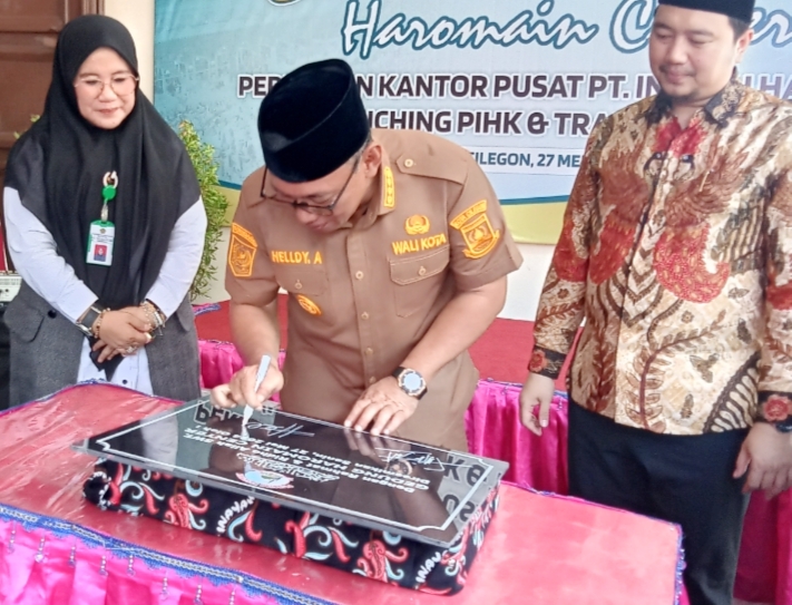 Sekilasindonesia.id, || CILEGON – Walikota Cilegon H. Helldy Agustian menghadiri undangan Grand Opening Haromain Centre Haji dan Umroh sekaligus penandatanganan di Ruko Taman Tropis Homestay PCI Kota Cilegon Banten, Senin (27/05/2024).