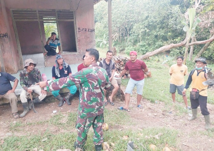 Sekilasindonesia.id, || SERANG – Koramil 2306/Mancak Kodim 0623/Cilegon melaksanakan Komunikasi Sosial (Komsos) membahas tentang gotong royong jalan dan membahas tentang kerawanan musim hujan di wilayah Desa Balekambang dan Desa Sangiang Kecamatan Mancak Kabupaten Serang Banten, Jum’at (31/05/2024).
