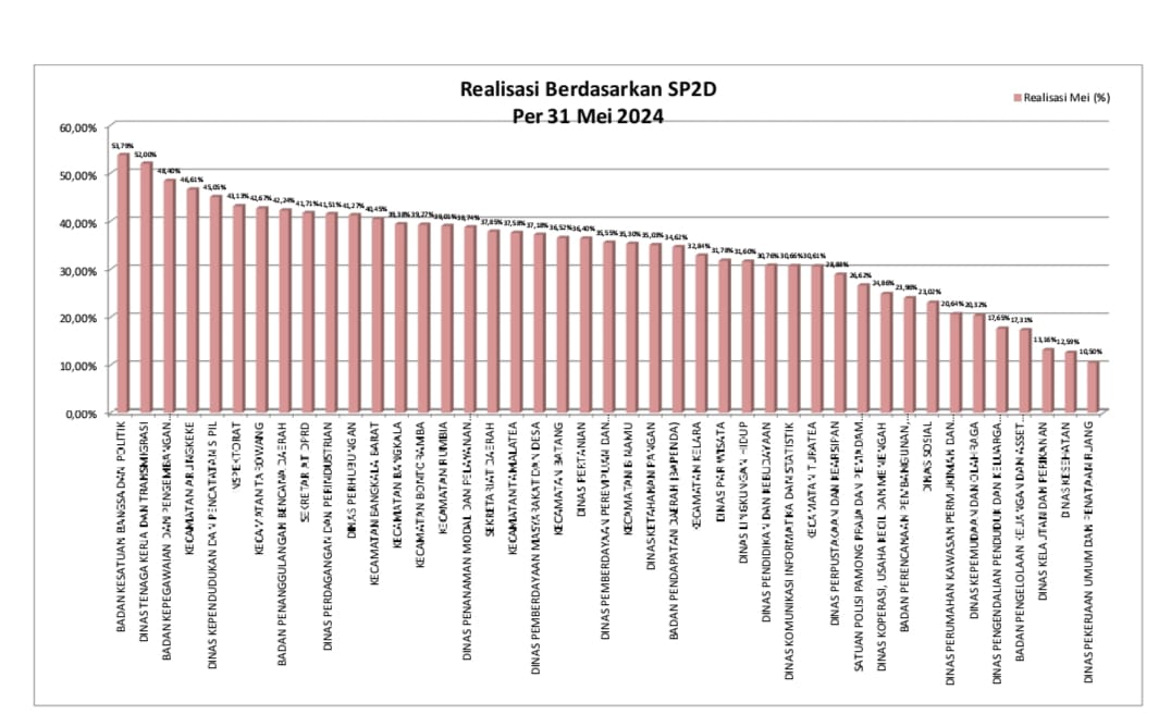 ”Laporan realisasi bulan Mei menunjukkan beberapa kemajuan signifikan di berbagai sektor, termasuk pembangunan infrastruktur, pelayanan kesehatan, dan pendidikan,. Namun demikian, beberapa sektor masih memerlukan perhatian dan upaya ekstra untuk mencapai target yang telah ditetapkan,” ungkapnya.