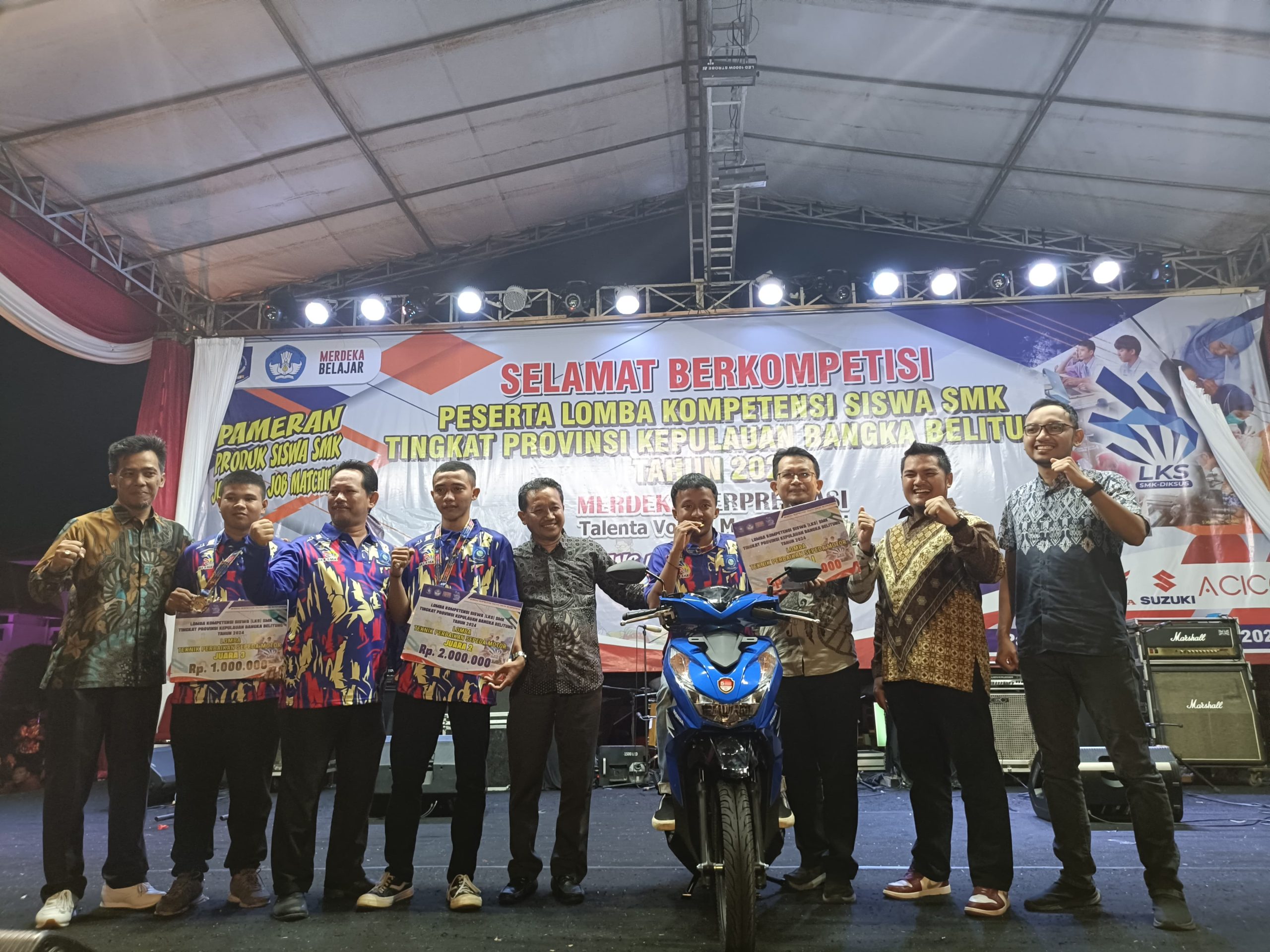 Dari total 14 sekolah jurusan Teknik Sepeda Motor (TSM) di Bangka Belitung, 5 sekolah diantaranya merupakan sekolah SMK TSM binaan Honda Babel. Dan dari 5 SMK binaan Honda Babel tersebut 2 diantaranya berhasil meraih juara 1 dan 2. Atas pencapaian tersebut, Honda Babel dengan bangga memberikan juara 1 hadiah utama satu unit sepeda motor Honda BeAt serta uang tunai.