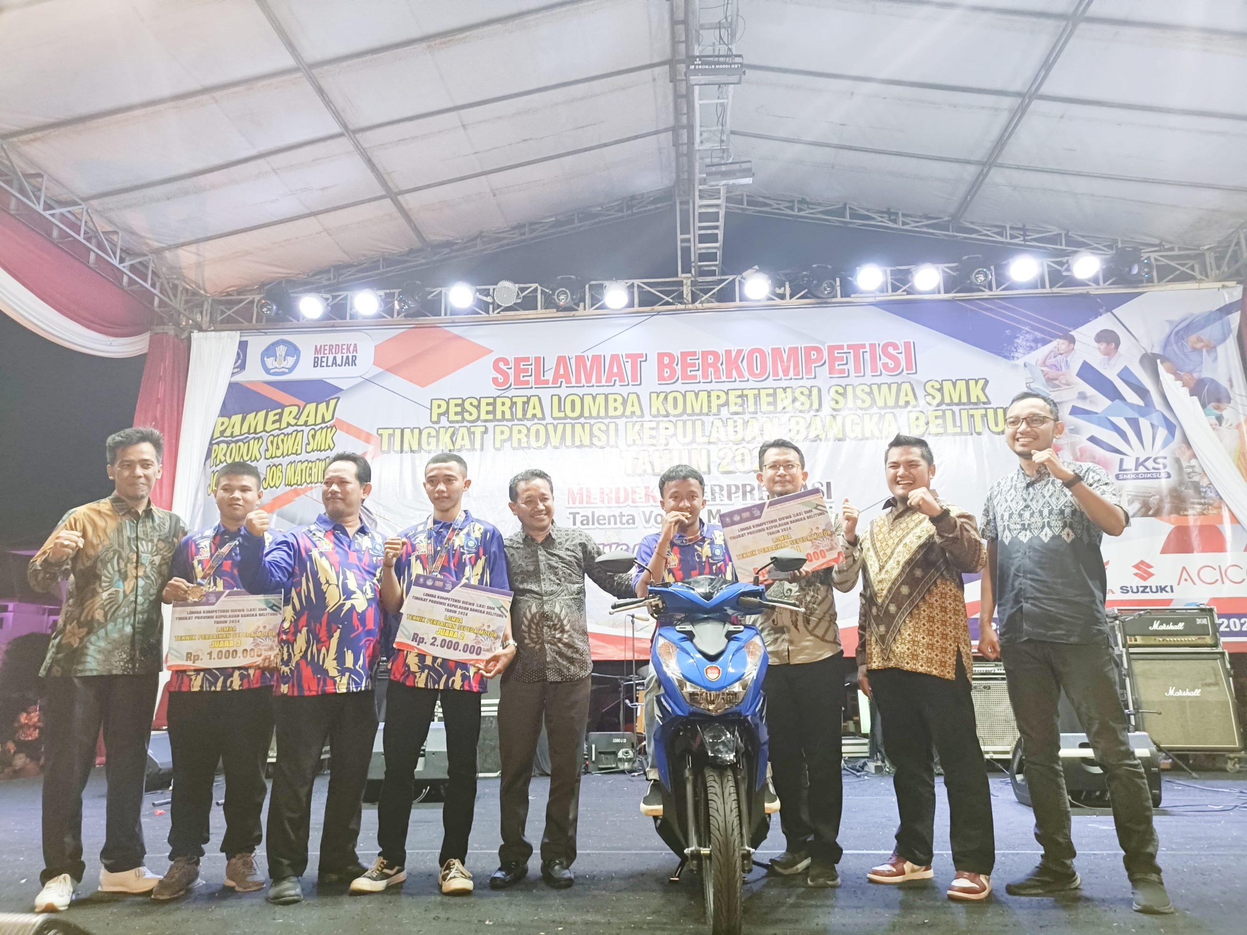 Dan dari 5 SMK binaan Honda Babel tersebut 2 diantaranya berhasil meraih juara 1 dan 2. Atas pencapaian tersebut, Honda Babel dengan bangga memberikan juara 1 hadiah utama satu unit sepeda motor Honda BeAt serta uang tunai.