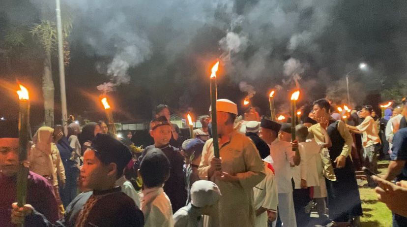 BABEL-Ratusan obor menerangi malam di Desa Kurnia Jaya, Belitung Timur, pada Sabtu malam, 6 Juli 2024, dalam perayaan menyambut Tahun Baru Islam 1 Muharram 1446 Hijriah. Inisiatif untuk menggelar kegiatan ini datang dari mahasiswa KKN IAIN Syekh Abdurrahman Siddiq Bangka Belitung.