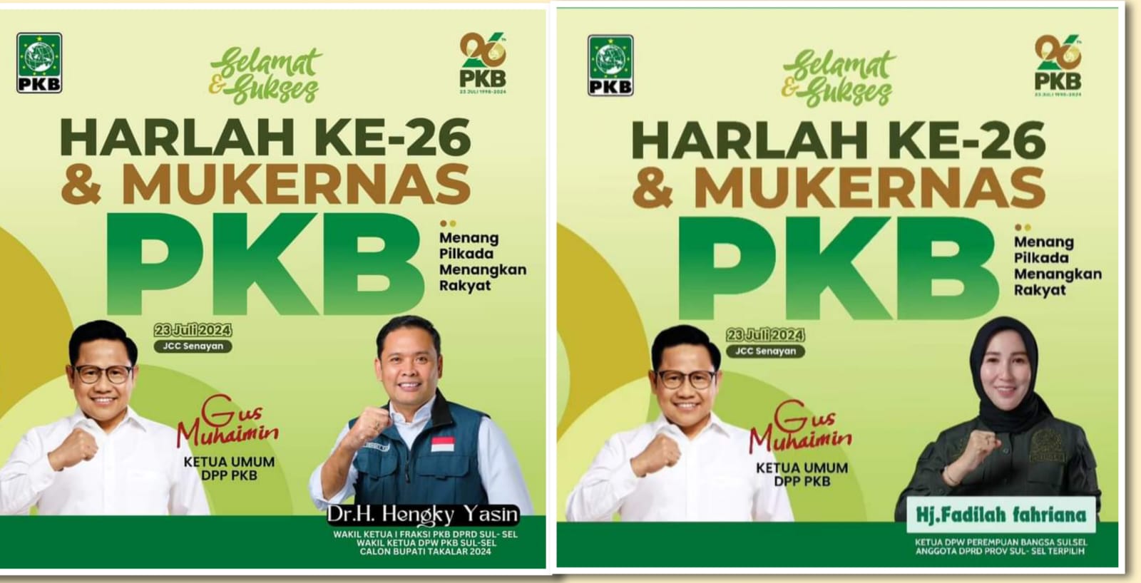 Sekilas Indonesia, Takalar – Dr. H. Hengky Yasin, S.Sos., M.M., anggota DPRD Provinsi Sulawesi Selatan dua periode (2014-2024) dari Fraksi PKB sekaligus Bakal Calon Bupati Takalar 2024, bersama Hj. Fadilah Fahriana, Anggota Terpilih DPRD Provinsi Sulawesi Selatan periode 2024-2029, mengucapkan selamat atas Hari Lahir ke-26 Partai Kebangkitan Bangsa (PKB). Selasa, 23/7/2024