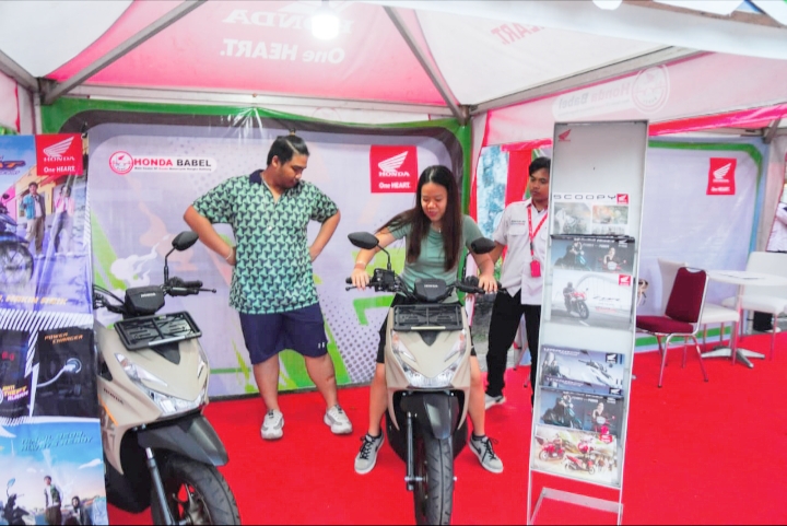 Manager Marketing Honda Babel, Vikry mengatakan New Honda Beat series terbaru 2024 kini tampil lebih ramping dengan desain terbaru yang menguatkan kesan sporty.