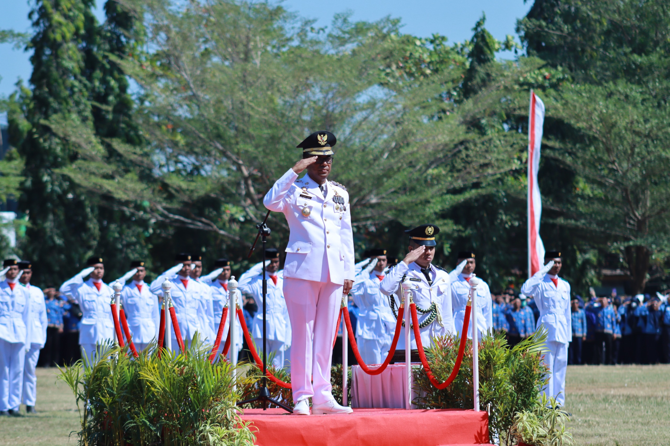 SEKILAS INDONESIA, TAKALAR – Pj. Bupati Takalar Setiawan Aswad, M.Dev.,Plg bertindak sebagai Inspektur Upacara peringatan HUT RI Ke-79 tingkat Kabupaten Takalar yang dilaksanakan di Lapangan Haji Makkatang Dg. sibali Takalar. Upacara berlangsung lancar. Pasukan Paskibraka sukses melakukan penaikan bendera merah putih diiringi Lagu Indonesia Raya.