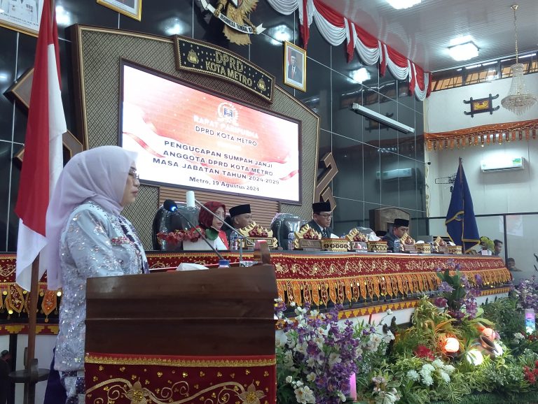 Diketahui sebanyak 25 anggota Dewan Perwakilan Rakyat (DPRD) Kota Metro priode 2024 -2029 di nyatakan resmi di lantik. Senin (19/8/2024).