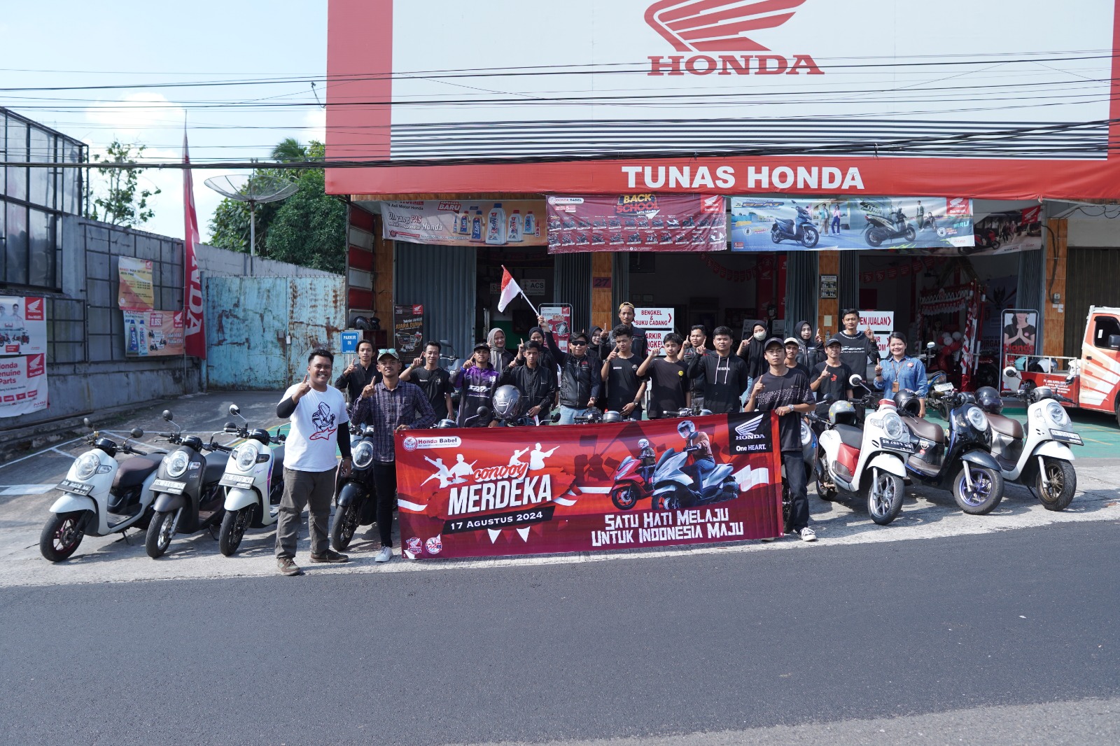 Sekilasindonesia.id, || BANGKA BELITUNG – Pada tanggal 17 Agustus, dalam rangka memperingati HUT Republik Indonesia ke-79, Honda Babel cabang Asia Surya Perkasa Belitung menyelenggarakan acara “Satu Hati Melaju untuk Indonesia Maju” Acara ini melibatkan komunitas Scoopy Belitung dan Brotherhood PCX Belitung yang berkumpul untuk merayakan kemerdekaan dengan semangat kebersamaan.