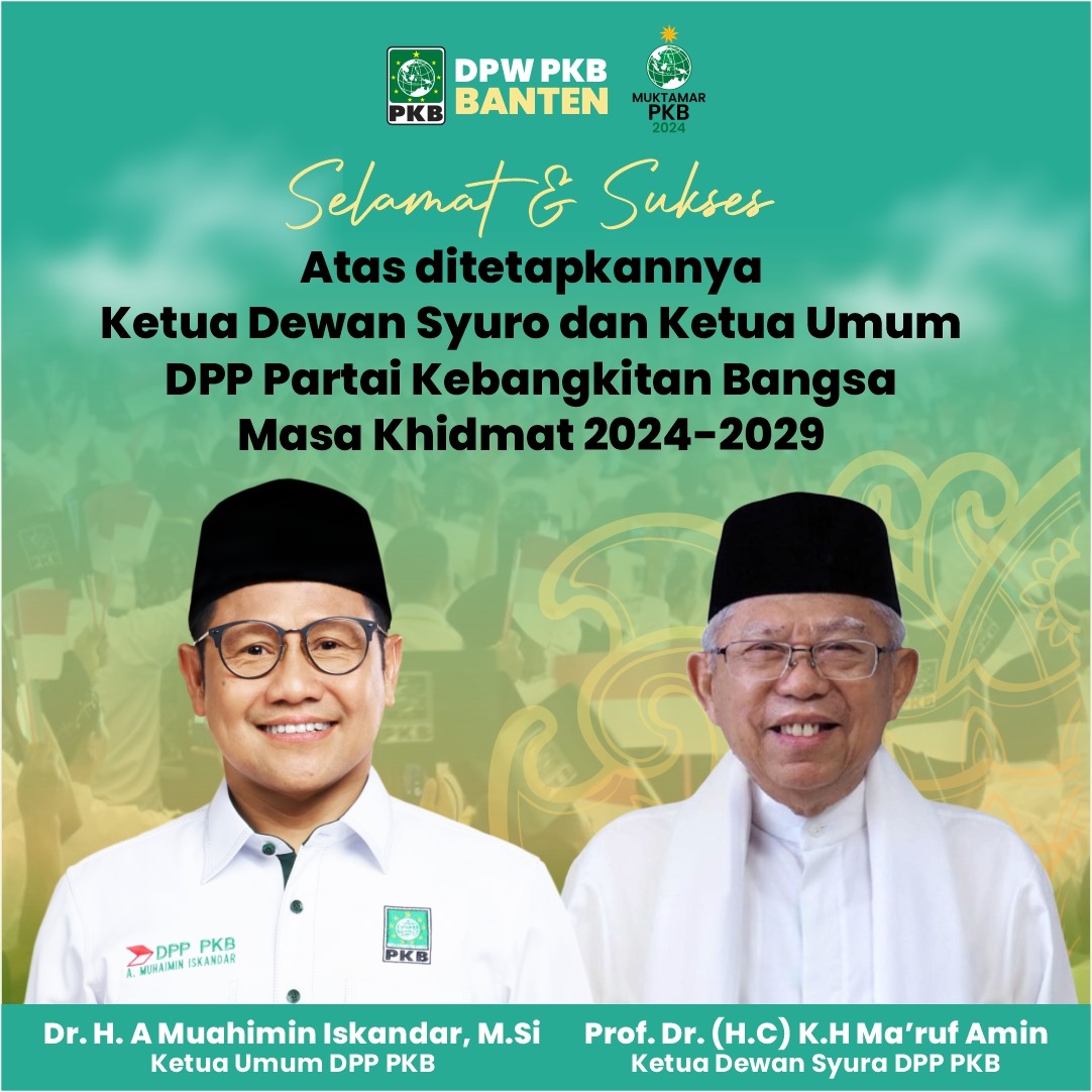Ketua DPW PKB Banten bersyukur atas suksesnya muktamar PKB tahun 2024 dan bersyukur karena terpilih kembali Gus Muhaimjn Iskandar sebagai Ketua Umum sekaligus Mandataeis Tunggal tunggal dan KH. Makruf Amin sebagai ketua dewan syuro, ini merupakan aspirasi yg tulus dari semua DPW Dan DPC PKB se Indonesia, dan muktamar ini sah karena pemilik sah suara dalam muktamar adalah DPW dan DPC PKB se Indonesia. Dari Banten berangkat DPW Dan delapan DPC Se Provinsi Banten.