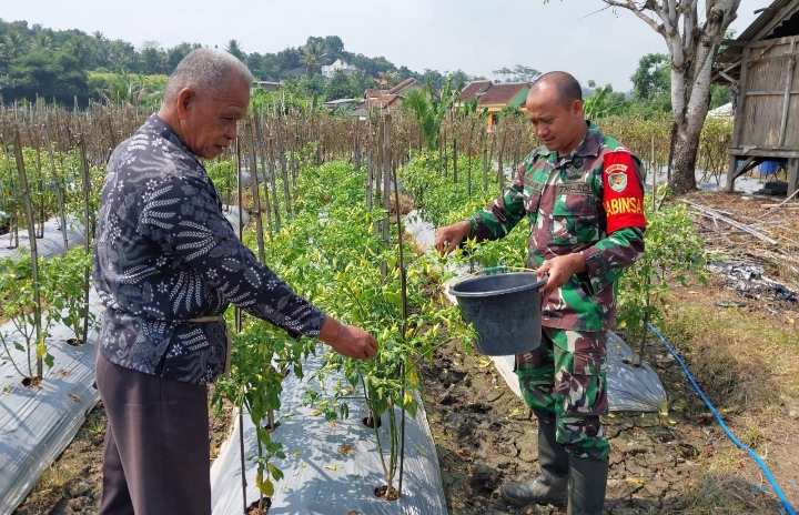 “Danramil 2306/Mancak memaparkan bahwa hari ini memberikan tugas pada Anggotanya Babinsa Desa Balekambang dan Babinsa Desa Sangiang untuk (Bintahwil) membantu pemeliharaan ketapang dan membantu memetik cabe di dua Desa yang sudah ditentukan,” papar Kapten inf Ratono.