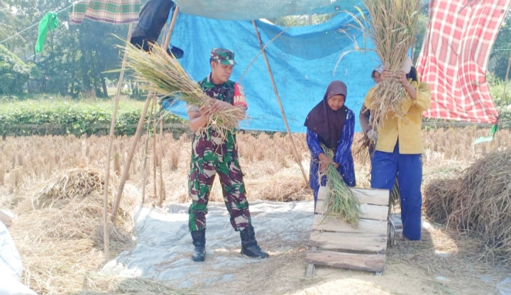 Babinsa Koramil 2306/Mancak, Bintahwil Membantu Memanen Padi