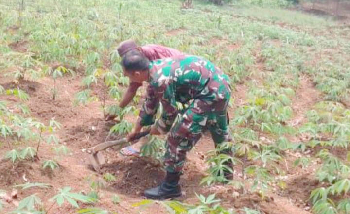 “Adapun Babinsa Desa Kamasan yang mendapatkan tugas lansung dari Danramil Cinangka mengungkapkan dalam melaksanakan kegiatan Bintahwil kegiatan dalam rangka pendampingan tanaman singkong di wilayah Desa Kamasan,” ungkap Babinsa Sertu Wahyu Puji.
