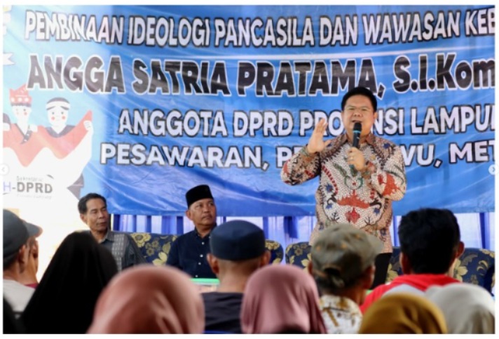 Hal ini ditegaskan Anggota DPRD Provinsi Lampung Dapil III (Kota Metro, Pringsewu, Pesawaran) Angga Satria Pratama S.ikom., M.B.A dalam giat Sosialisasi Pembinaan Ideologi Pancasila dan wawasan kebangsaan yang digelar di Desa Tanjung Lada, Kecamatan Gedung Tataan, Kabupaten Pesawaran, Provinsi Lampung, Jumat (04/10/2024).