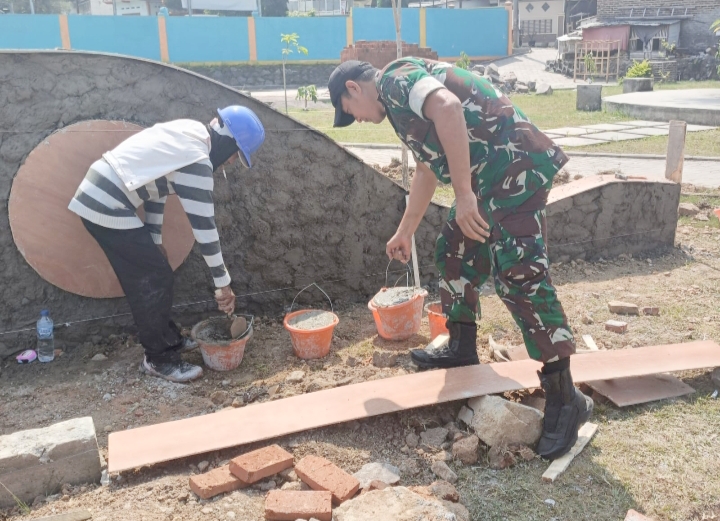 Sekilasindonesia.id, || CILEGON – Babinsa Koramil 2303/Pulomerak Kodim 0623/Cilegon giat Karbak pembuatan gapura dan renovasi rumah di wilayah Kelurahan Tegal Bunder Kecamatan Purwakarta dan Kelurahan Tamansari Kecamatan Pulomerak Kota Cilegon Banten, Minggu (13/10/2024).