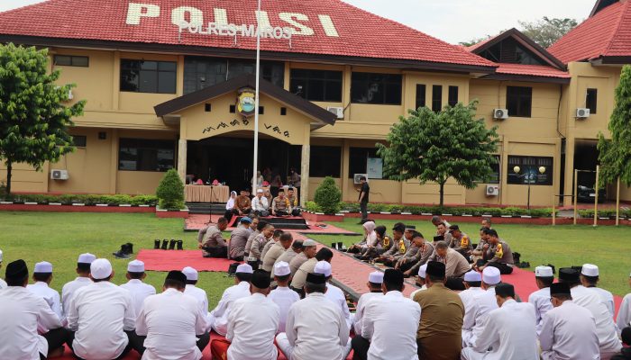 Sekilas Indonesia,Maros,Sulsel – Bekerjasama dengan Baznas, Polres Maros menyalurkan bantuan program sosial Badan Amil Zakat Nasional (Baznas) Kabupaten Maros yang dirangkaikan dengan kegiatan Tadarus dan Mujahadah dihalaman Mapolres Maros, Jumat (1/11/2024).