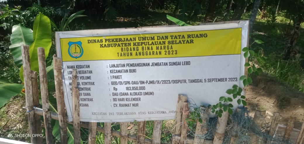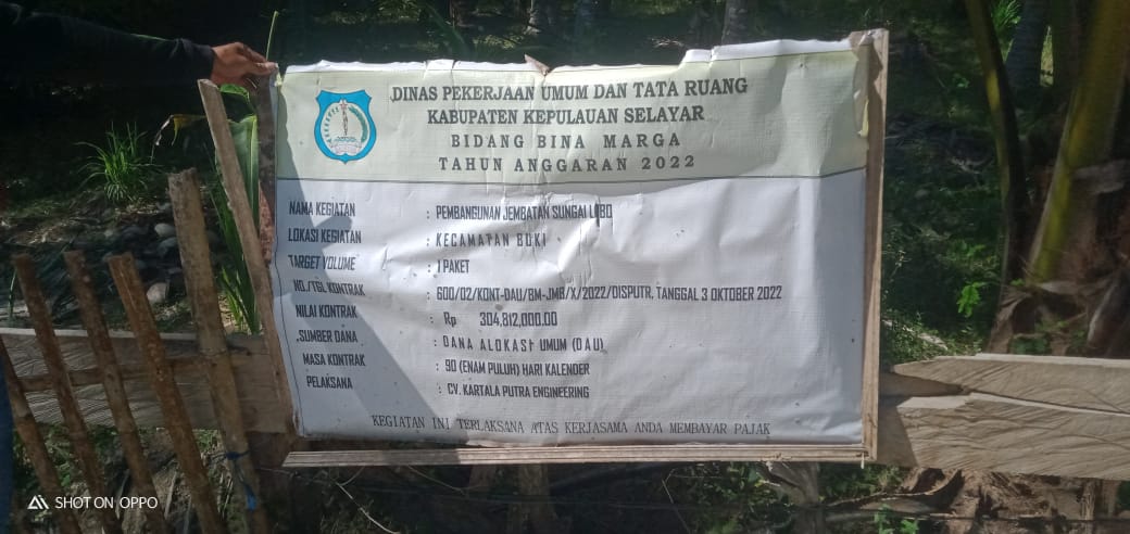 Sekilas Indonesia, Selayar – Pekerjaan pembangunan jembatan diduga dikerja Asal-asalan sehingga pembangunan jembatan baru 1 tahun sudah mengalami keretakan yang mengangah yang terletak di Desa La’langbata, Kecamatan Buki, Kabupaten Selayar, Jum’at 01/11/2024.