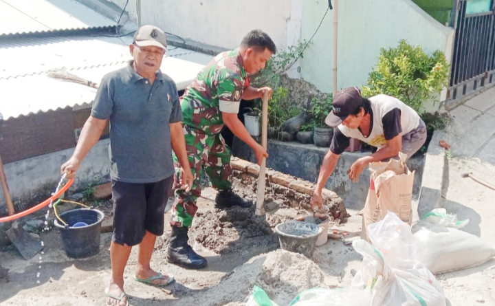 “Adapun Danramil 2301/Cilegon memberi tugas pada anggotanya Babinsa Kelurahan Masigit dan Kelurahan Kedaleman giat Karbak perbaikan jalan dan memperbaiki sarana drainase,” urai Mayor Inf Usman.