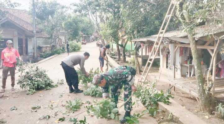 “Dimana Babinsa Desa Bantarwangi yang mendapatkan tugas dari Danramil Cinangka mengatakan dalam melaksanakan giat Karbak pemangkasan pohon di wilayah Desa Bantarwangi,” ujar Babinsa Serka Heru Purnomo.