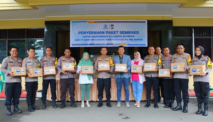 Sekilas Indonesia,Maros,Sulsel- Kepolisian Resor Maros menerima paket bantuan sembako dari Bank BRI Cabang Maros.