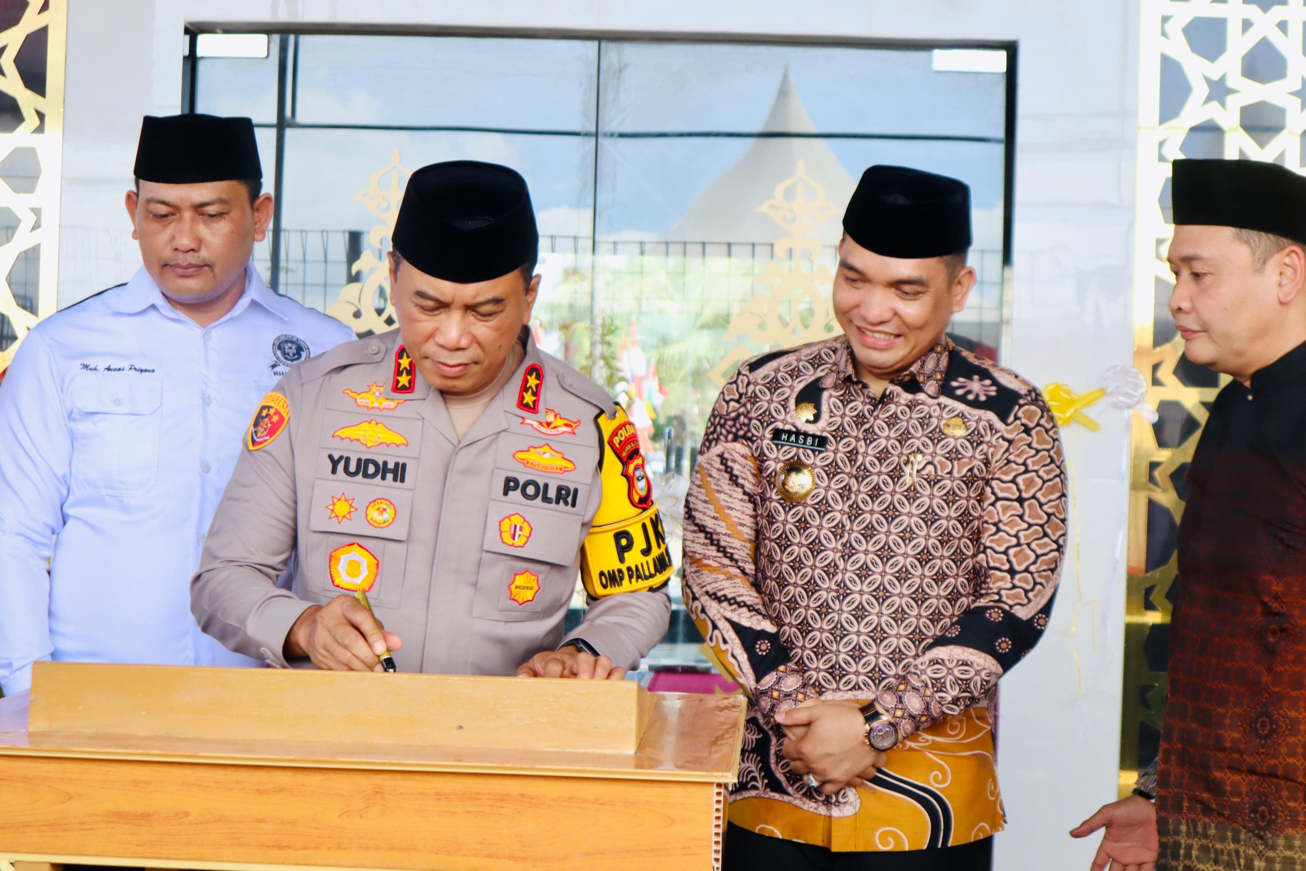 Pj. Bupati Takalar Dr. H. Muhammad Hasbi,.S.STP,.M.A.P,.M.IKom dampingi Kapolda Sulsel Irjen Pol. Yudhiawan S.H., S.I.K., M.H., M.Si. meresmikan Masjid AR Rahman Bharaduta, Jumat 3 Januari 2025.