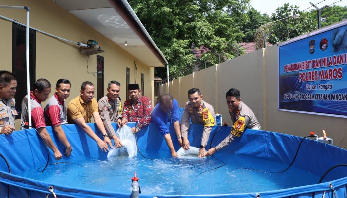 Dukung Program Asta Cita Presiden, Polres Maros Tebar Ribuan Bibit Ikan Dikolam Bioflok Sat Resnarkoba