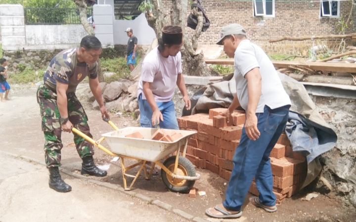 “Adapun Danramil 2307/Ciwandan memberi tugas pada anggotanya Babinsa Kelurahan Kepuh dan Kelurahan Gunung Sugih giat Karbak pembangunan rumah warga,” urai Mayor Inf Rusdianto.