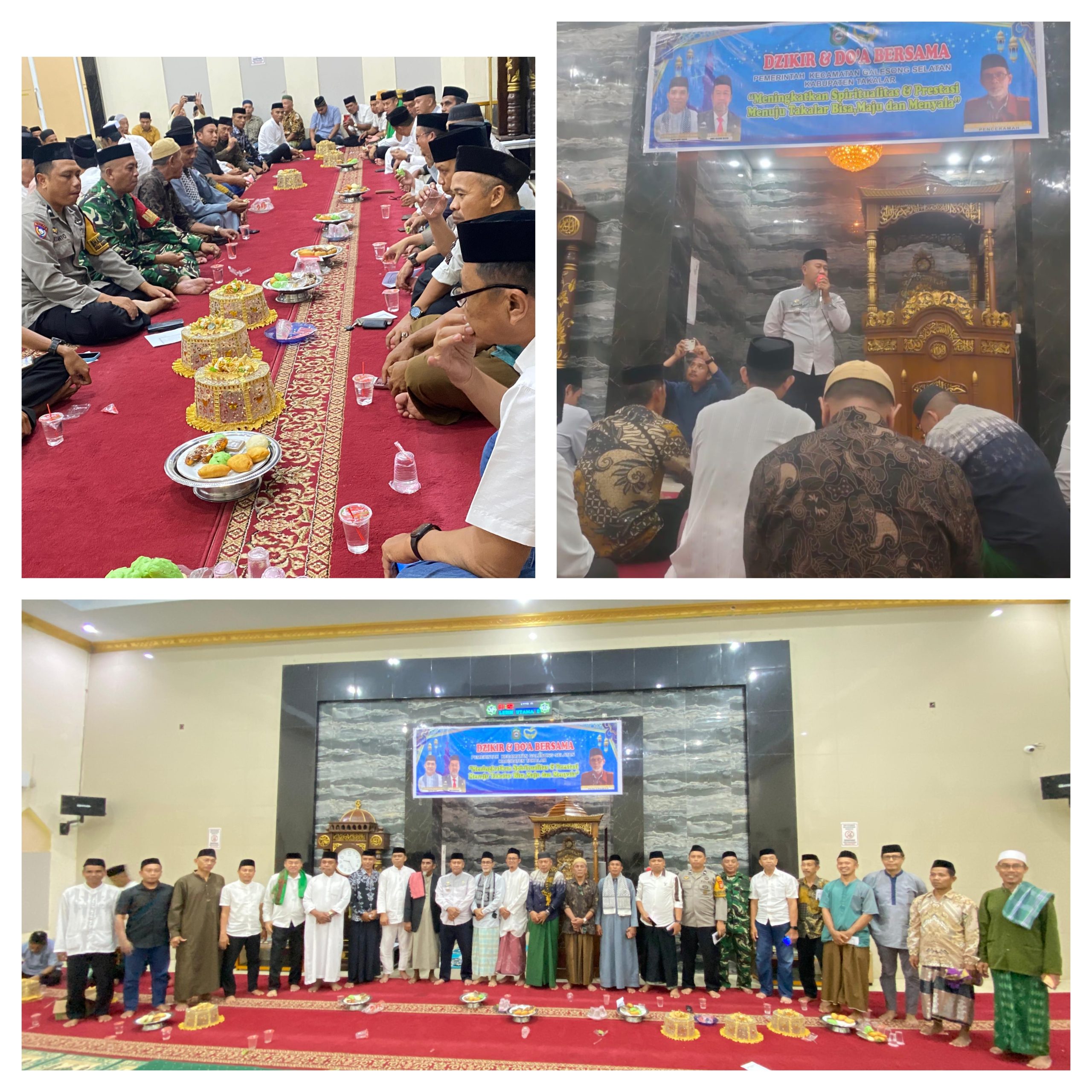 Zikir dan doa dipimpin oleh Ustaz Sahlan Hamzah dengan suasana penuh khidmat dan kekhusyukan. Acara ini dihadiri oleh berbagai elemen masyarakat, di antaranya Camat Galesong Selatan beserta jajarannya, para kepala desa, imam desa, Ketua MUI, Ketua DMI, Kapolsek, Danramil, majelis taklim, serta tokoh agama dan pemuda se-Kecamatan Galesong Selatan.