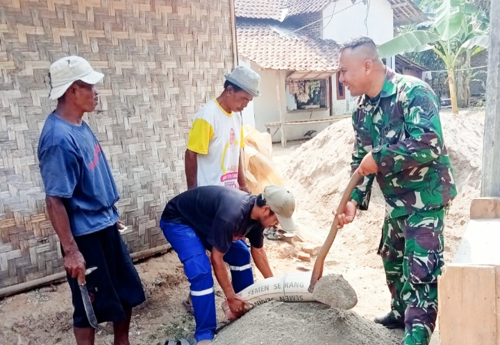 Sekilasindonesia.id, || SERANG – Babinsa Koramil 2305/Cinangka Kodim 0623/Cilegon giat Karbak pembuatan rumah warga di wilayah Desa Mekarsari dan Desa Kamasan Kecamatan Cinangka Kabupaten Serang Banten, Jum’at (21/02/2025).