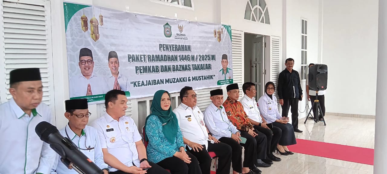 TAKALAR-Badan Amil Zakat Nasional (Baznas) Kabupaten Takalar menyalurkan paket bantuan Ramadhan kepada 218 orang petugas kebersihan pada Dinas Lingkungan Hidup dan Pertanahan Kabupaten Takalar, warga fakir miskin 100 paket serta bantuan biaya pendidikan yang diserahkan langsung oleh Bupati Takalar, Ir Mohammad Firdaus Daeng Manye, MM, dirujab Bupati Takalar, Rabu (26/3).