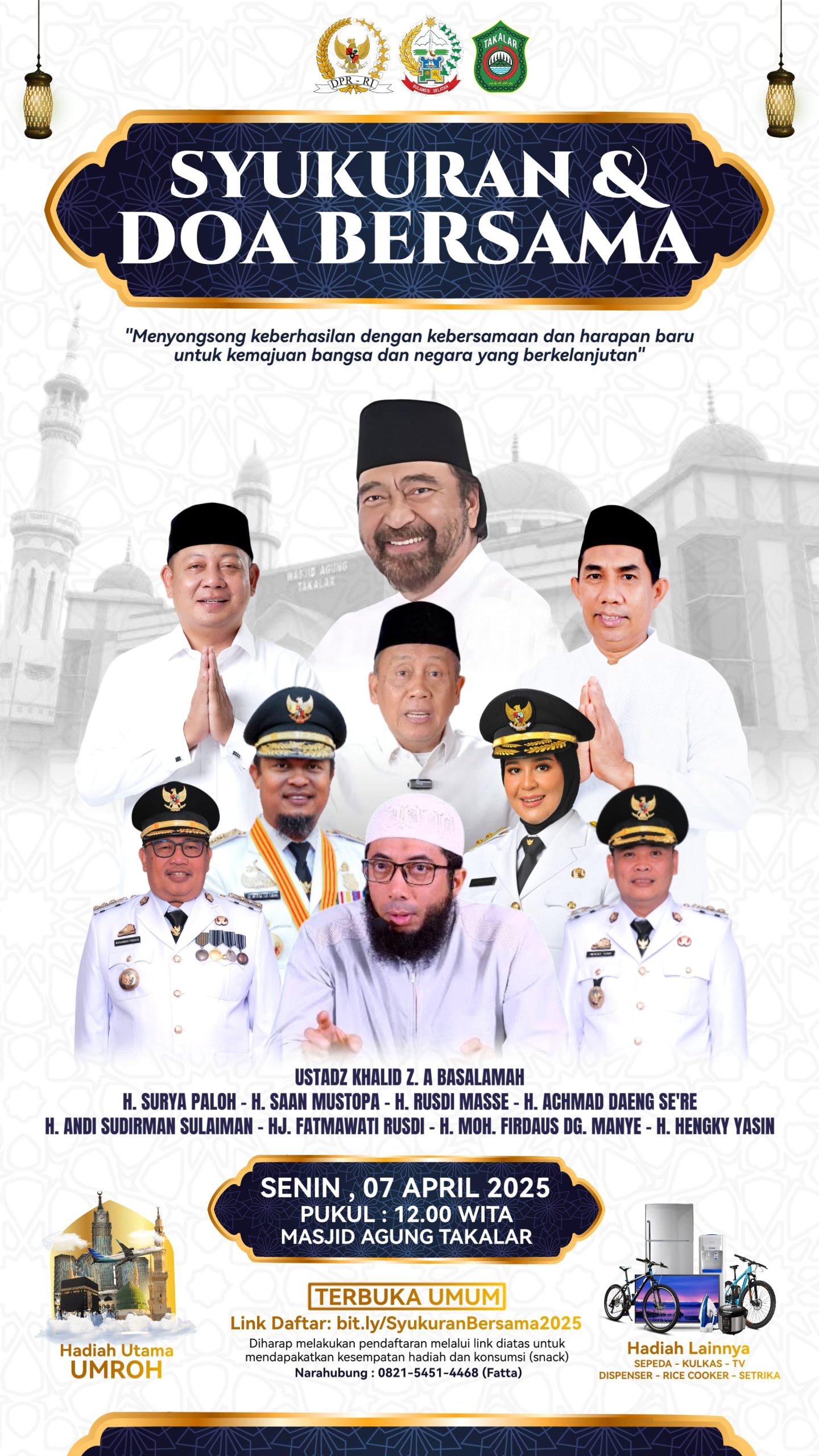 Selain doa bersama, kegiatan ini juga diisi dengan tausiah oleh Ustadz kondang, Khalid Z.A. Basalamah. Dalam ceramahnya, beliau mengajak umat untuk terus istiqamah dalam berbuat kebaikan dan menjadikan momen syukuran ini sebagai pengingat untuk memperkuat hubungan spiritual dengan Allah SWT.