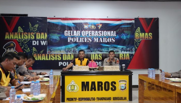 Sekilas Indonesia, MAROS, SULSEL- Kepolisian Resor Maros menggelar kegiatan Analisa dan Evaluasi (Anev) Keamanan dan Ketertiban Masyarakat (Kamtibmas) sekaligus gelar operasi. Kegiatan ini merupakan agenda rutin untuk mengevaluasi kinerja dan memantapkan langkah pengamanan wilayah hukum Polres Maros.