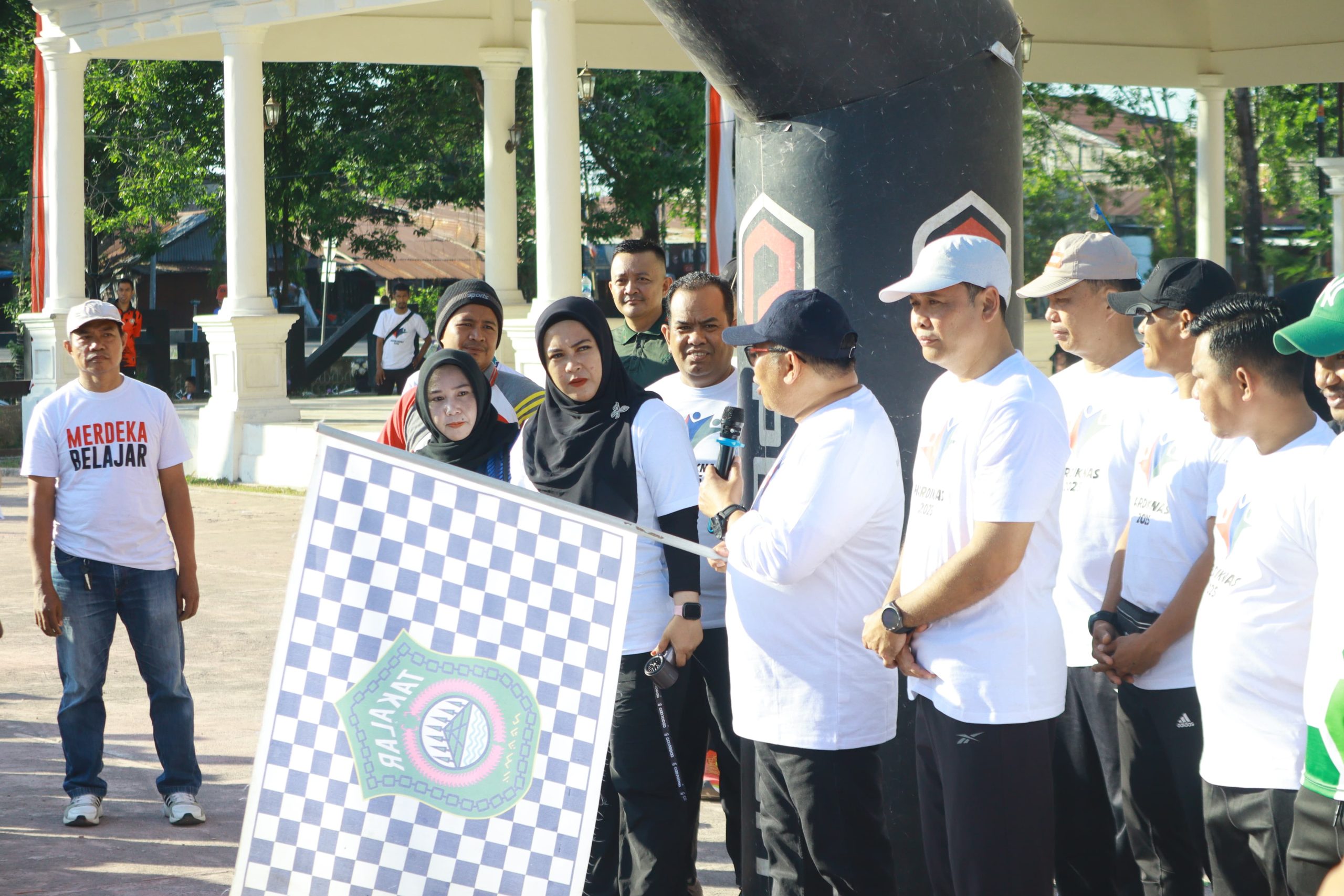 TAKALAR-, Peserta Gerak Jalan Santai yang terdiri dari para guru, siswa siswi tingkat TK sampai SMA/SMK dari 10 kecamatan yang ada di Takalar beserta masyarakat umum dengan antusias mengikuti gerak jalan santai serangkaian memperingati Hari Pendidikan Nasional (Hardiknas) Tingkat Kab. Takalar di Lapangan H. Makkatang Dg. Sibali. Minggu, 27 April 2025.