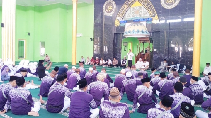 Ketua DPRD Bangka Barat, H. Badri, S.H., menyampaikan pesan khusus kepada ketua rombongan haji.