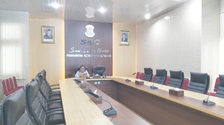 Kegiatan berlangsung secara virtual melalui Zoom Meeting di Smart Room Center (SRC), Kantor Wali Kota Pangkalpinang.