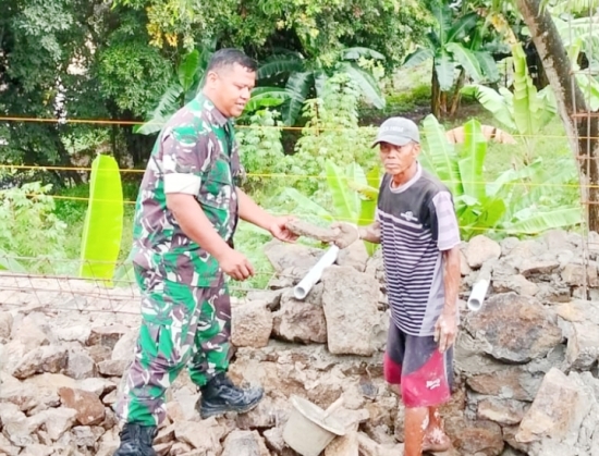 “Dimana Babinsa Desa Ciwarna yang mendapatkan tugas dari Danramil Mancak mengatakan dalam melaksanakan giat Karbak dengan masyarakat dalam rangka membantu pembuatan rumah warga bertempat di wilayah Desa Ciwarna,” ujar Babinsa Serka Joni.