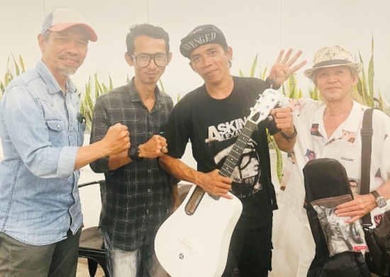“Alhamdulillah, ini dapat gitar untuk menggantikan gitar lama yang rusak. Terima kasih Pak Basit Cinda dan Ustad Dede,” ujarnya.