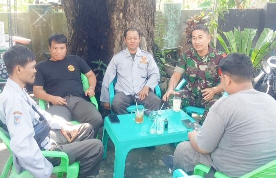 Pelda Reno, Babinsa wilayah Cibeber, melaksanakan komsos bersama staf kelurahan dan kelompok masyarakat (pokmas) setempat.