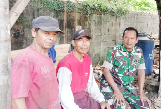 Serka Heru Purnomo, Babinsa Desa Karang Suraga, melaksanakan Komsos dengan aparatur pemerintahan desa (Apem) untuk membahas rencana kerja bakti bersama warga.