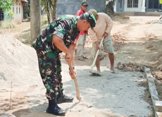 Serka Badrudin, Babinsa Koramil 2307/Ciwandan, memimpin kegiatan Karbak pembangunan jalan di Kelurahan Tegal Ratu, Kecamatan Ciwandan, kegiatan gotong royong ini melibatkan warga setempat dan bertujuan meningkatkan akses transportasi bagi masyarakat.