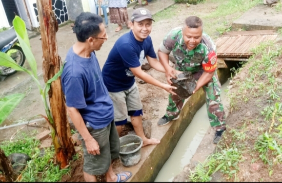 Sementara itu, di Kampung Pareni, Desa Mancak, Sertu Much Yasir, Babinsa Desa Mancak, turut melaksanakan Karbak bersama warga dengan fokus pada perbaikan saluran air.