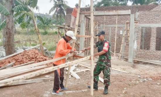 Sementara itu, di lokasi berbeda, Sertu Herman, Babinsa Desa Wanarata, melaksanakan giat Karbak dengan membantu pembangunan pondasi rumah warga di Kampung Kiamar, RT 03/RW 06, Kecamatan Bojonegara.
