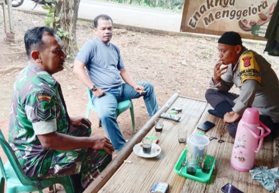 Sertu Kepala (Serka) Heru Purnomo, Babinsa Koramil 2305/Cnk, melaksanakan Komsos dengan tokoh masyarakat (Tomas) di Desa Karang Suraga, Kecamatan Cinangka.