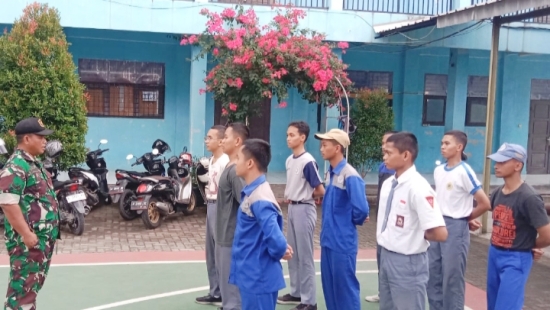 Sertu Sariadi memberikan materi Pendidikan Bela Negara (PBB) kepada siswa-siswi di Kelurahan Taman Baru.